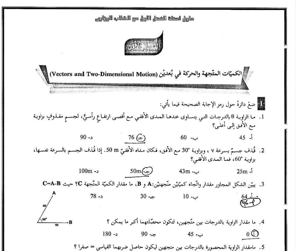 حل اسئلة الفصل الاول و الفصل الثاني فيزياء اول ثانوي علمي المنهاج الجديد Facebook