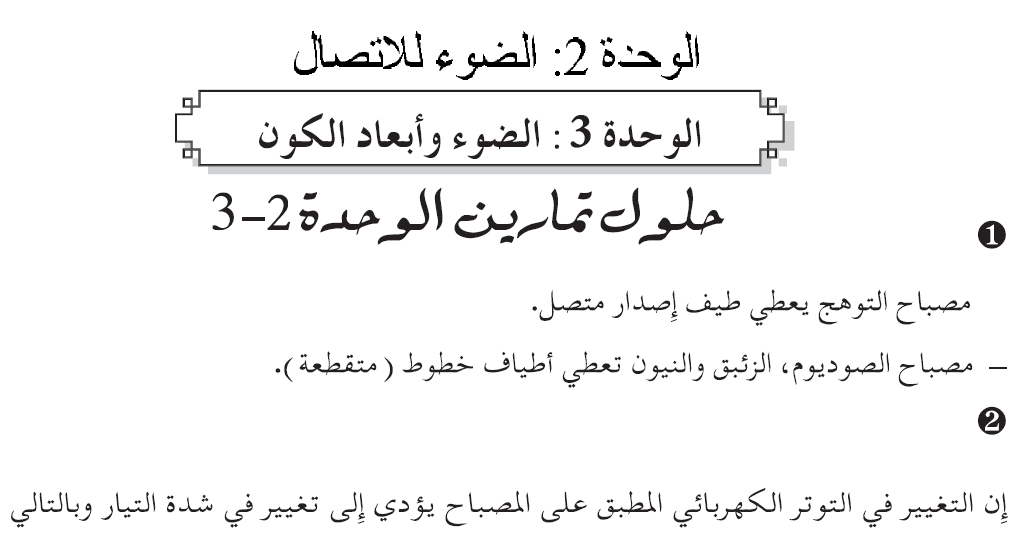 حلول تمارين كتاب الفيزياء للسنة الاولى ثانوي جذع مشترك اداب