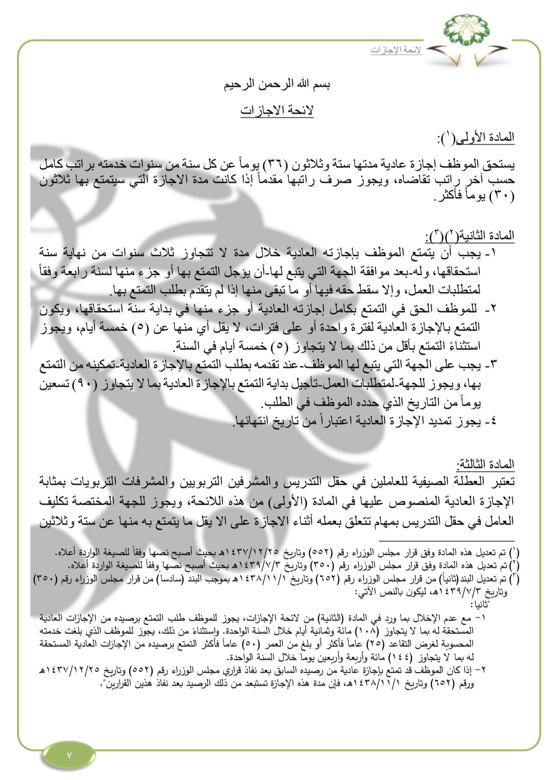 لائحة الاجازات الخدمة المدنية 1440