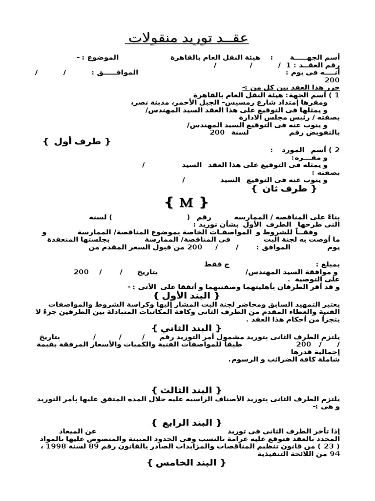 عقد عينة لتوريد مواد البناء عقد توريد قياسي