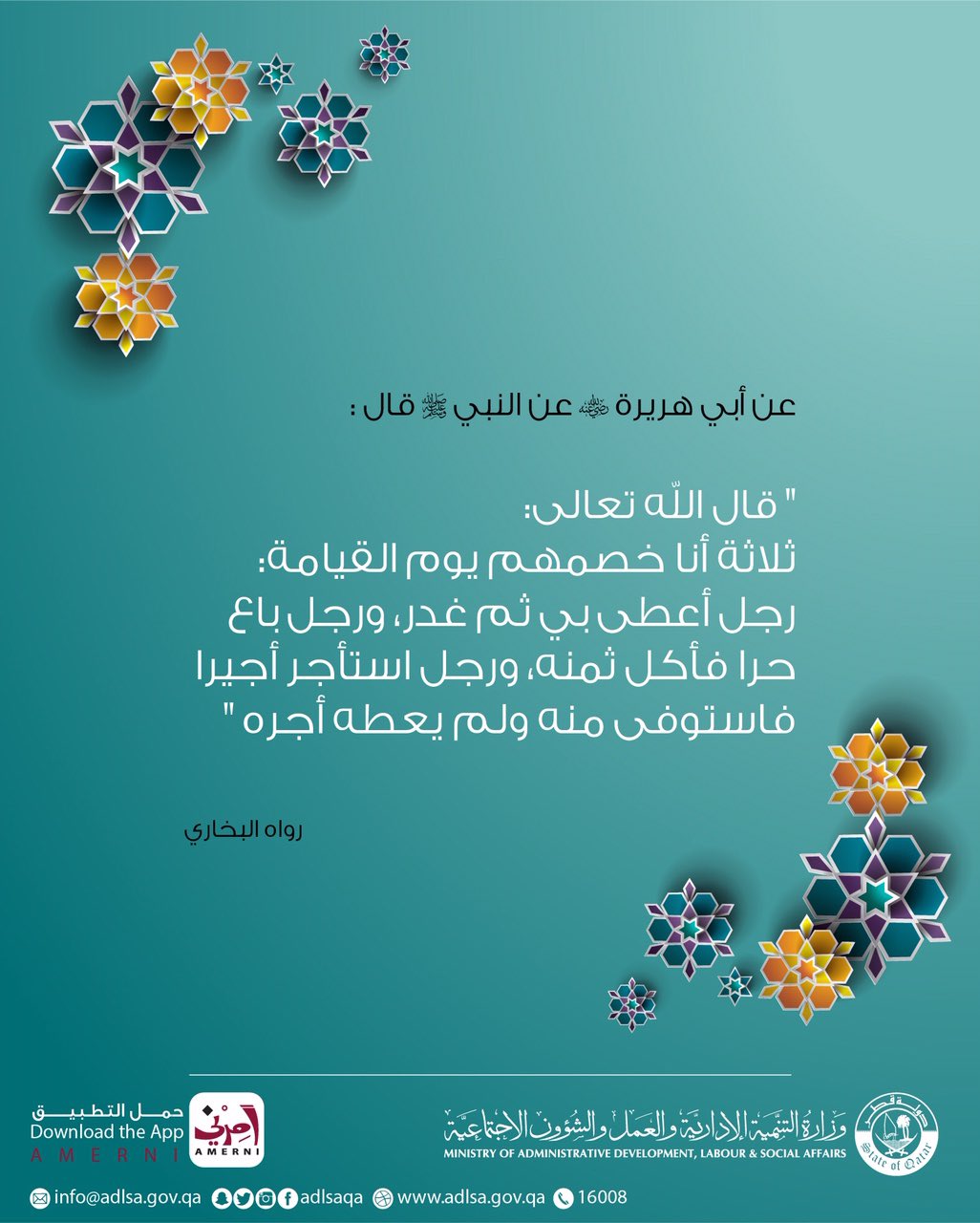 وزارة التنمية والعمل On Twitter عن أبي هريرة رضي الله عنه عن النبي صلى الله عليه وسلم قال قال الله تعالى ثلاثة أنا خصمهم يوم القيامة رجل أعطى بي ثم غدر