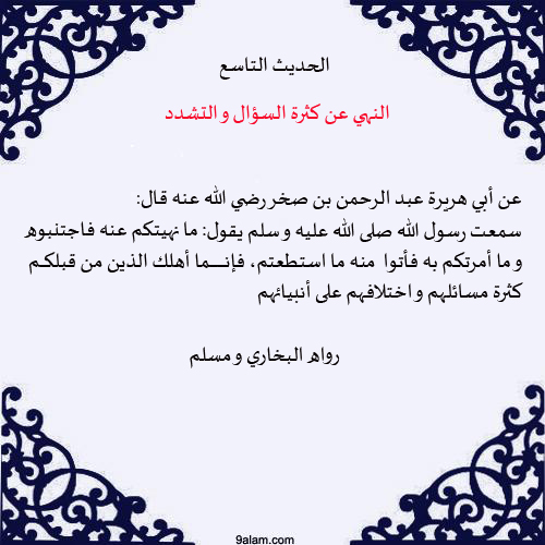 دورة حفظ الأربعين النووية الحديث التاسع النهي عن كثرة السؤال و التشدد فيض القلم