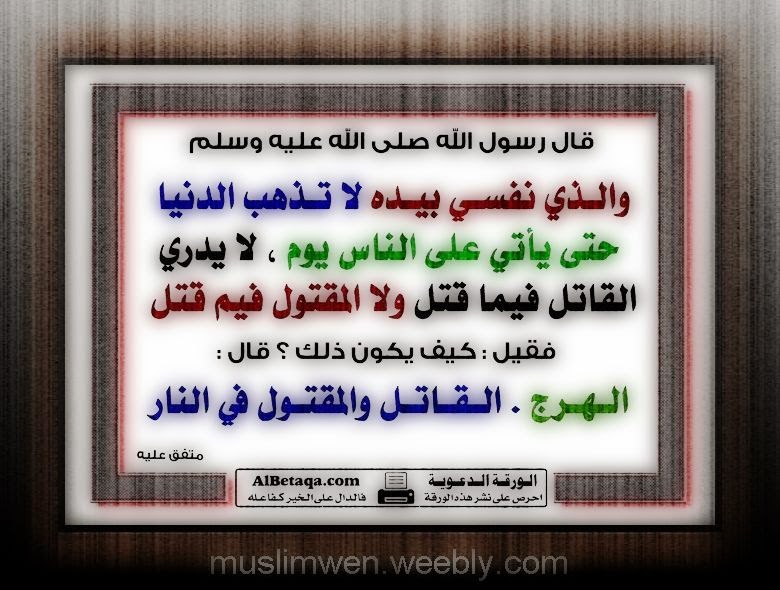 الهرج القاتل والمقتول في النار مدونة قل هذا سبيلي