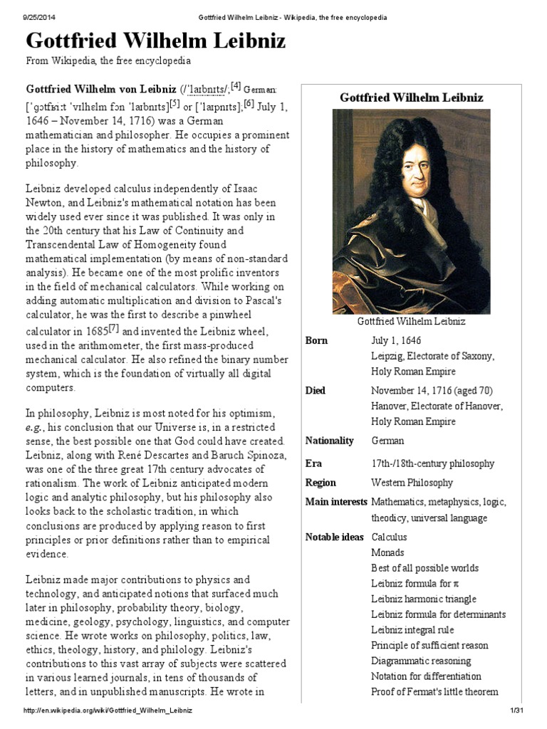 Gottfried Leibniz Biography Contributions Works Updated 2019